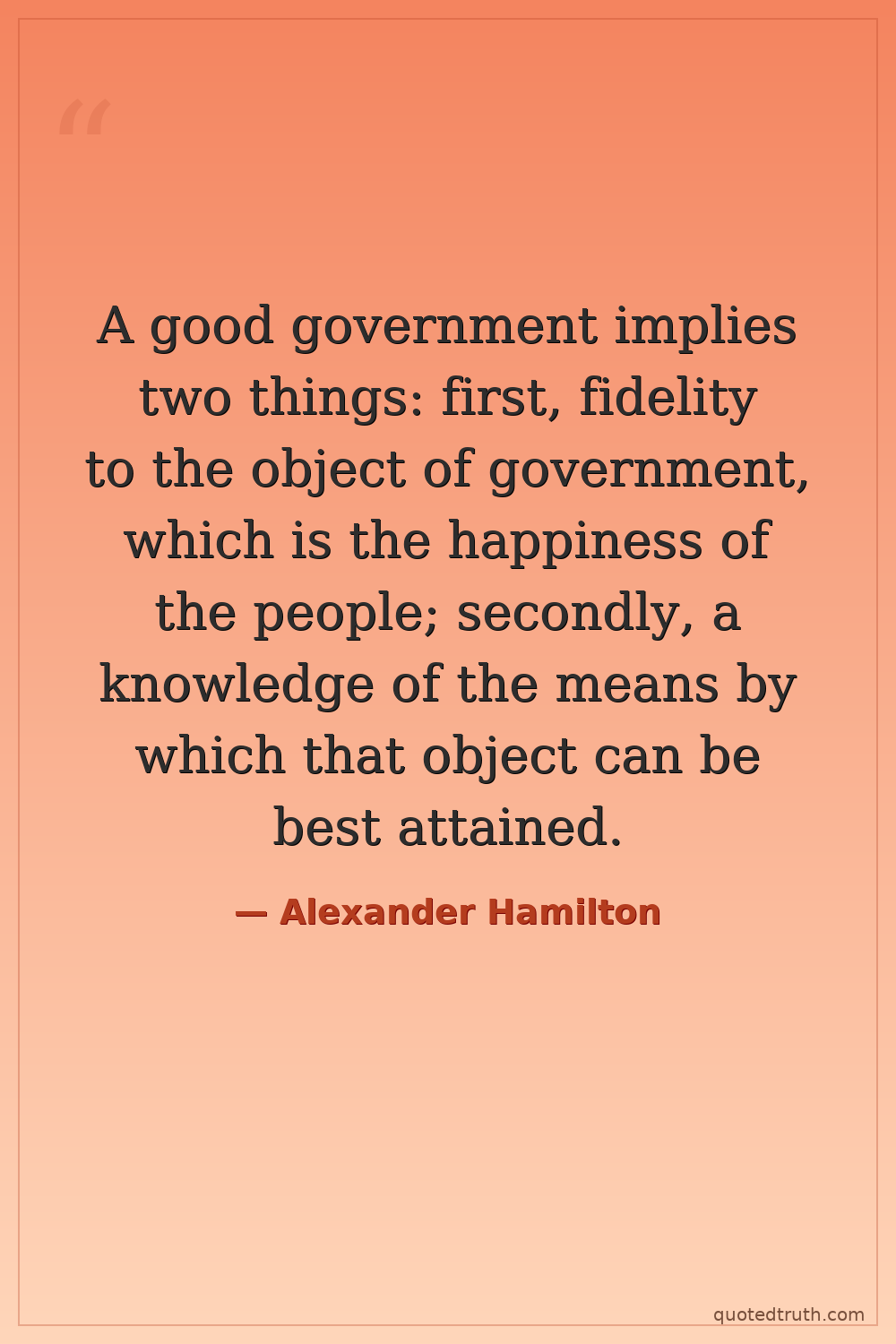 A good government implies two things: first, fidelity to the object of government, which is the happiness of the people; secondly, a knowledge of the means by which that object can be best attained.