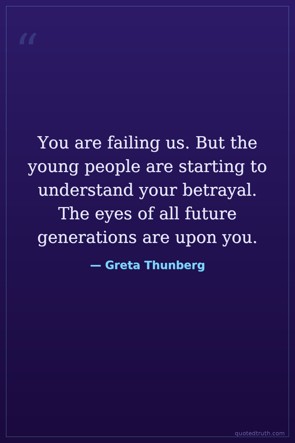 You are failing us. But the young people are starting to understand your betrayal. The eyes of all future generations are upon you.