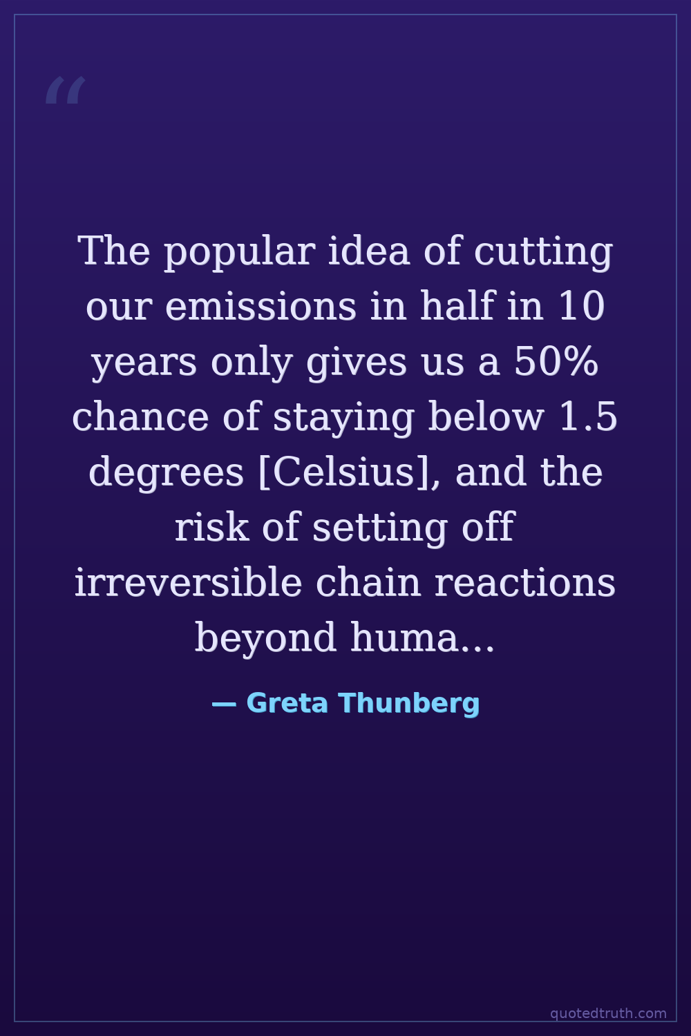 The popular idea of cutting our emissions in half in 10 years only gives us a 50% chance of staying below 1.5 degrees [Celsius], and the risk of setting off irreversible chain reactions beyond human control.