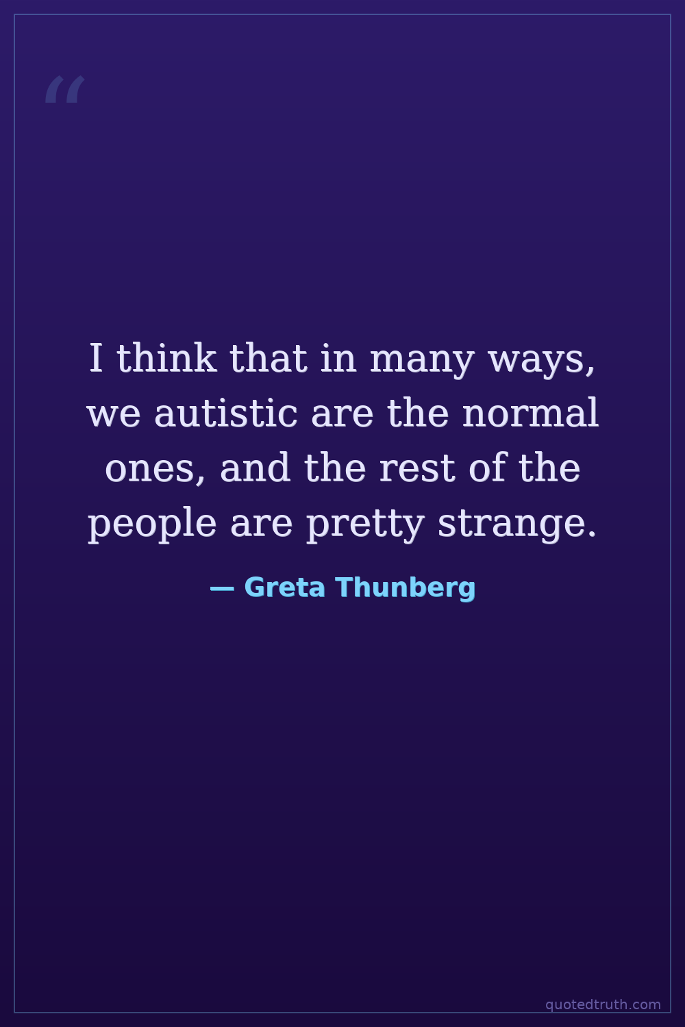 I think that in many ways, we autistic are the normal ones, and the rest of the people are pretty strange.