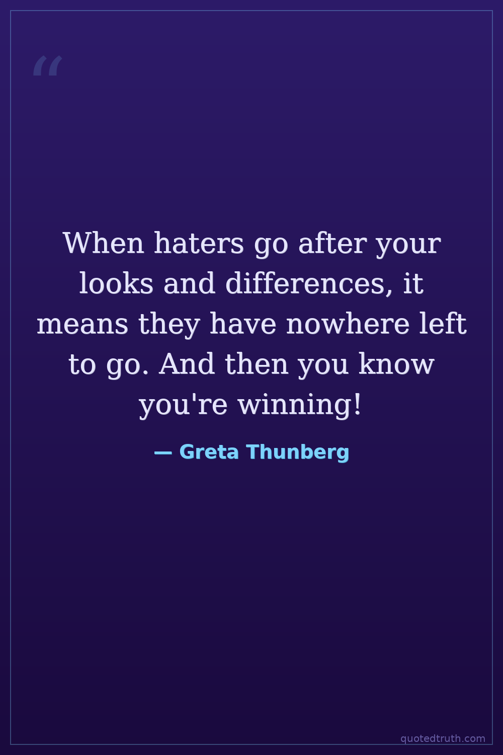 When haters go after your looks and differences, it means they have nowhere left to go. And then you know you're winning!