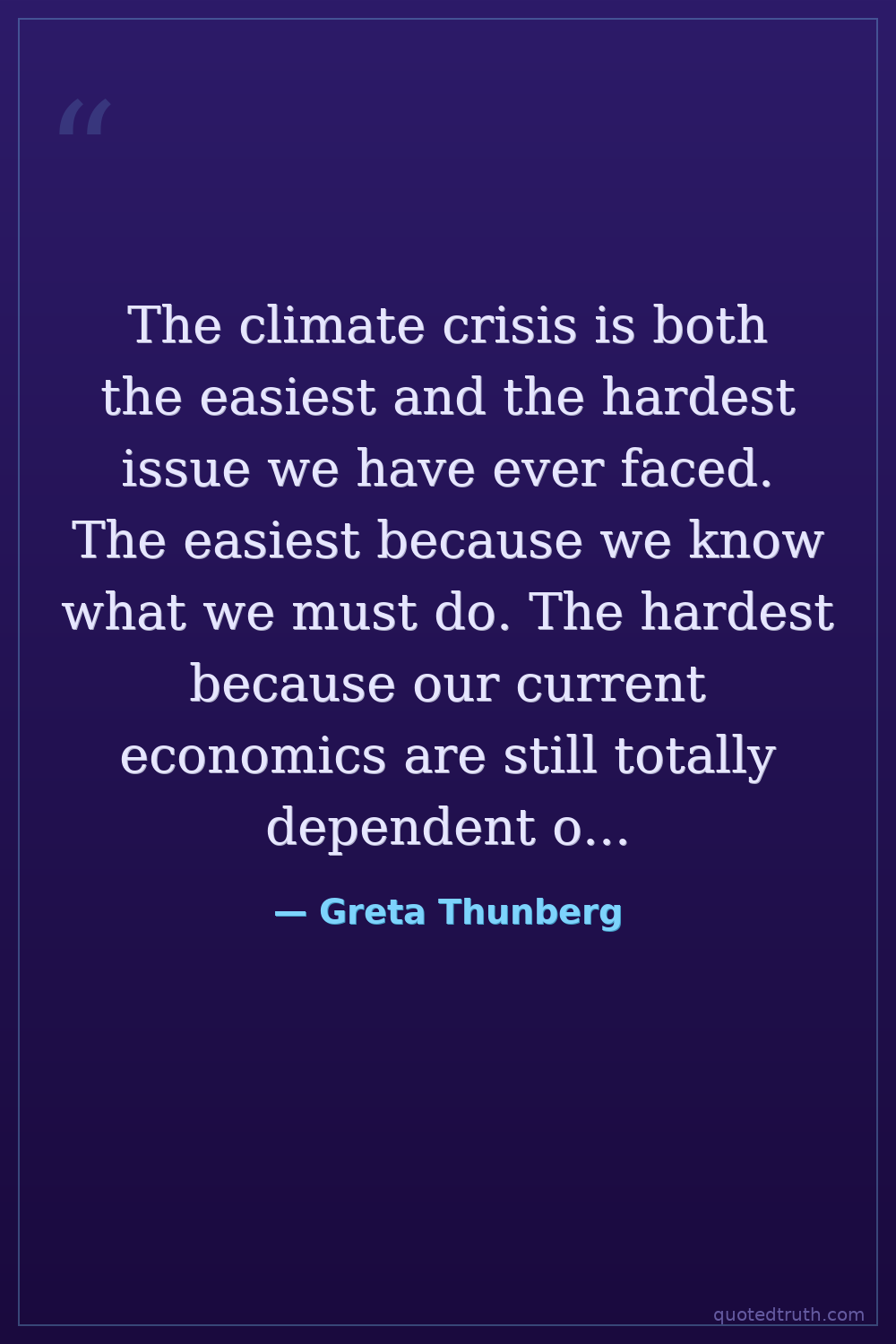 The climate crisis is both the easiest and the hardest issue we have ever faced. The easiest because we know what we must do. The hardest because our current economics are still totally dependent on burning fossil fuels.