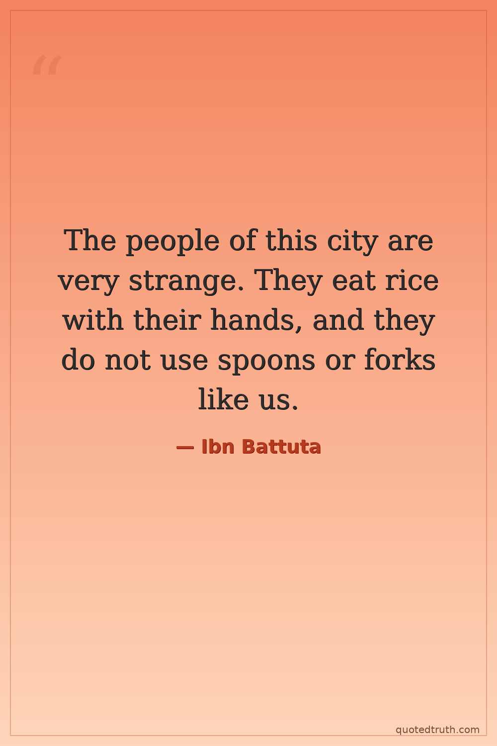 The people of this city are very strange. They eat rice with their hands, and they do not use spoons or forks like us.
