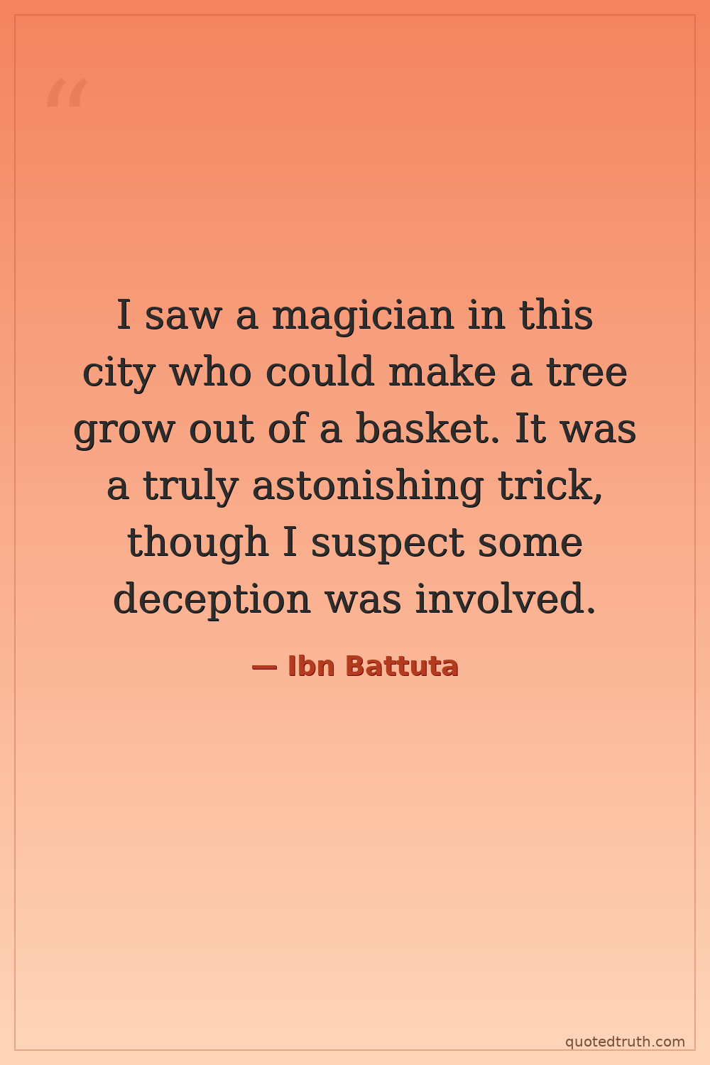 I saw a magician in this city who could make a tree grow out of a basket. It was a truly astonishing trick, though I suspect some deception was involved.