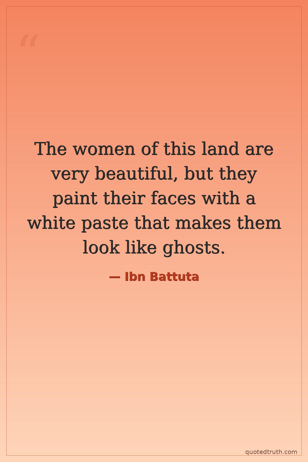 The women of this land are very beautiful, but they paint their faces with a white paste that makes them look like ghosts.