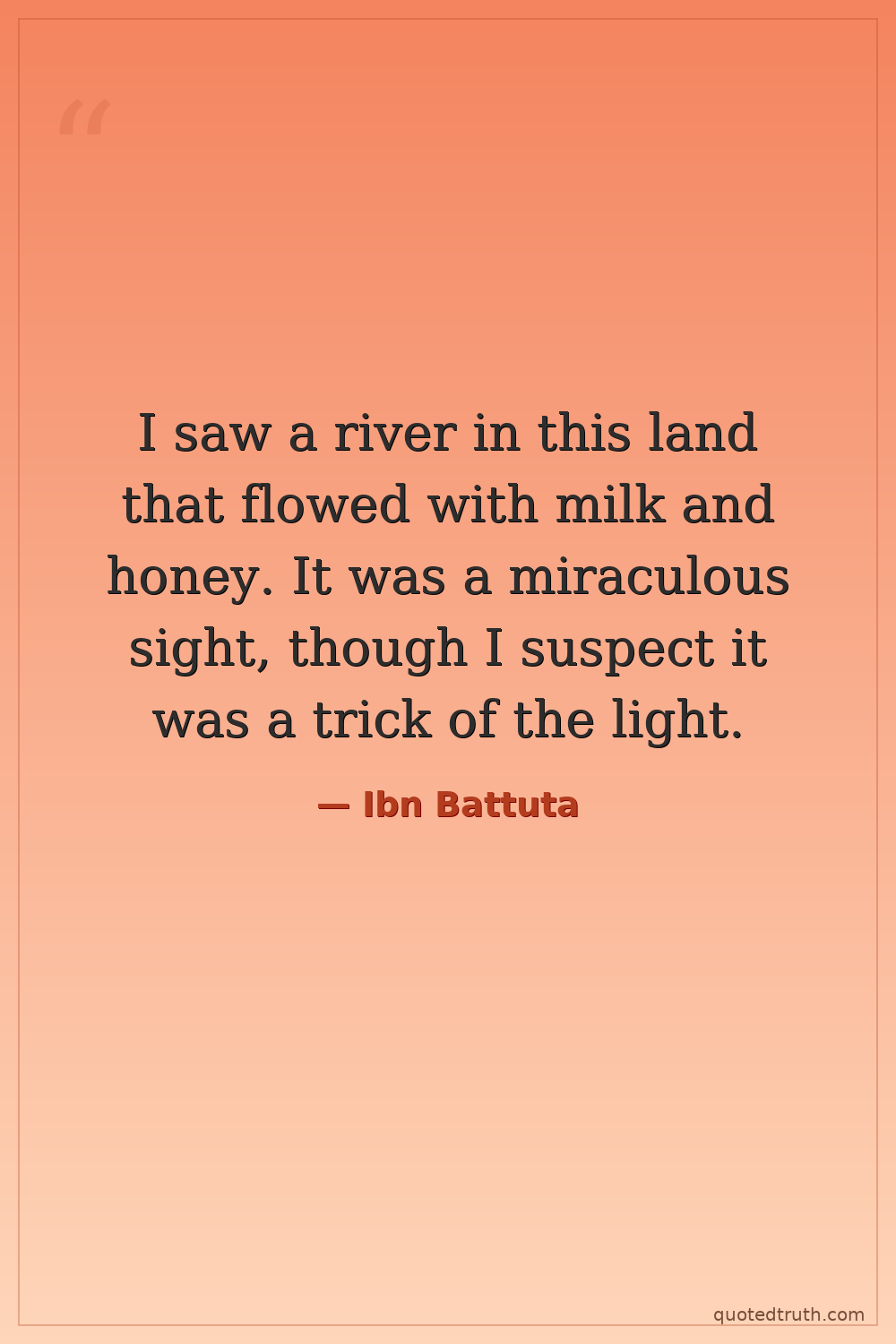I saw a river in this land that flowed with milk and honey. It was a miraculous sight, though I suspect it was a trick of the light.