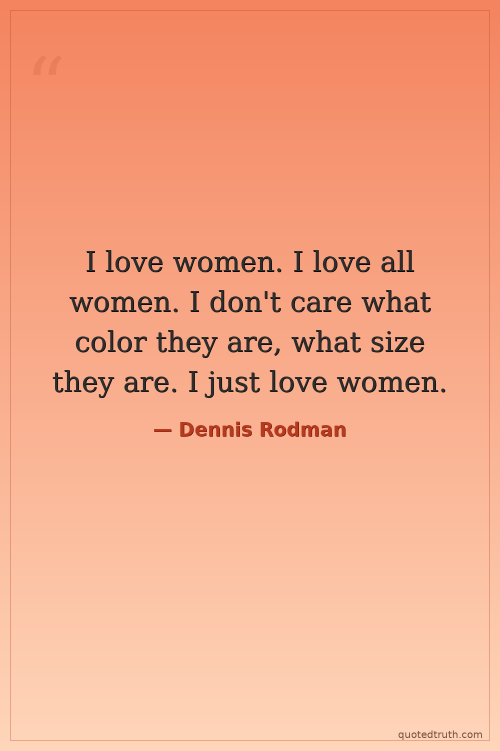 I love women. I love all women. I don't care what color they are, what size they are. I just love women.