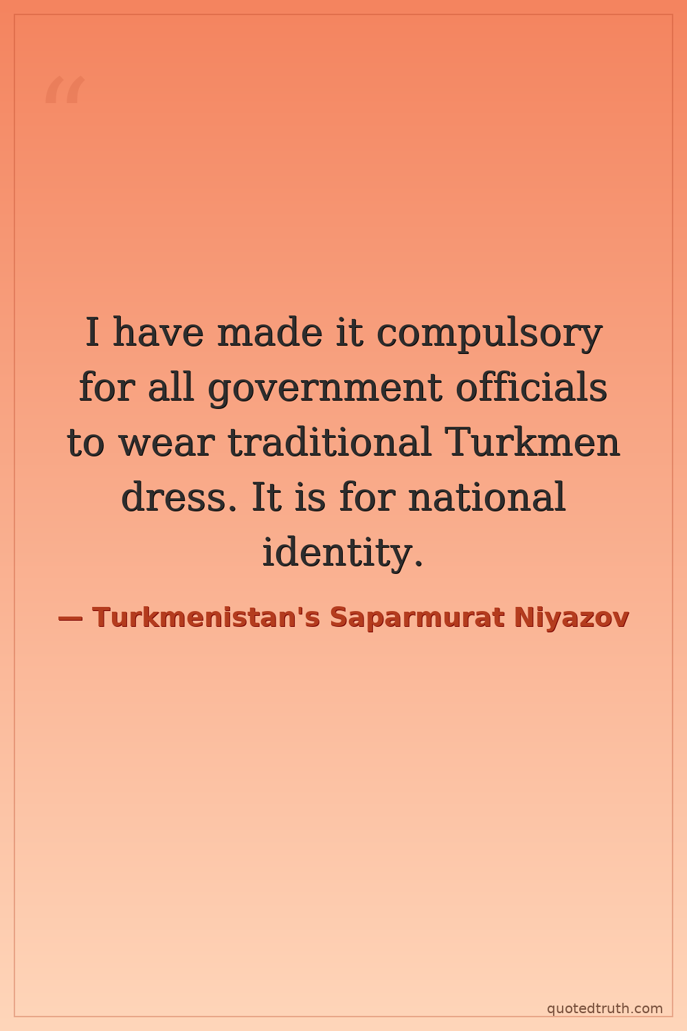 I have made it compulsory for all government officials to wear traditional Turkmen dress. It is for national identity.