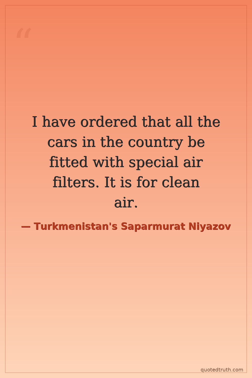 I have ordered that all the cars in the country be fitted with special air filters. It is for clean air.