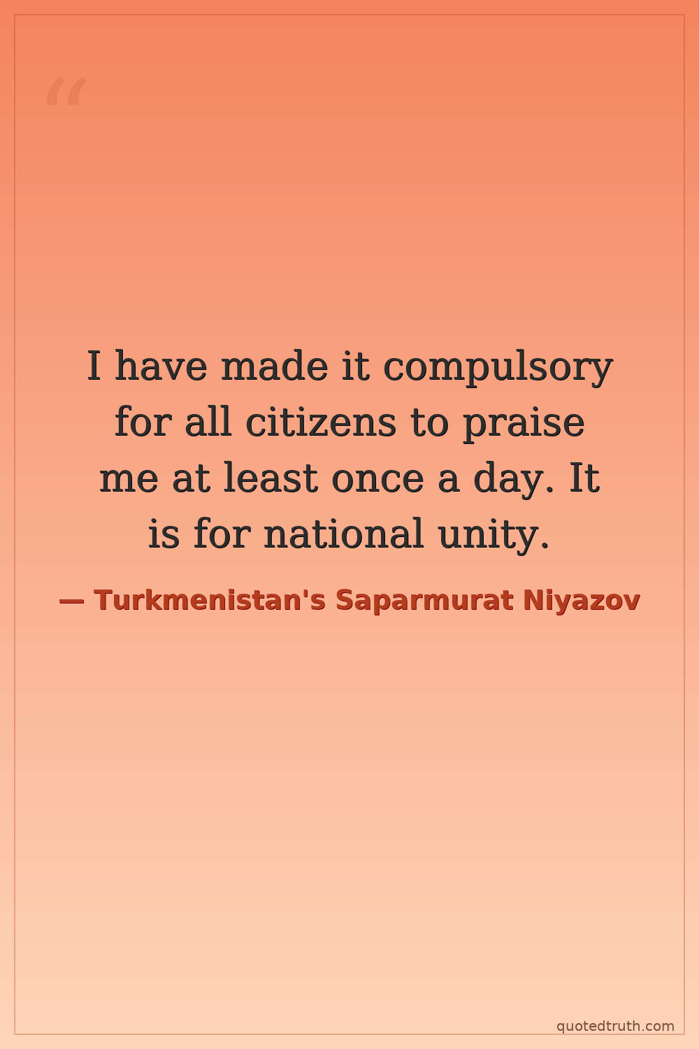 I have made it compulsory for all citizens to praise me at least once a day. It is for national unity.