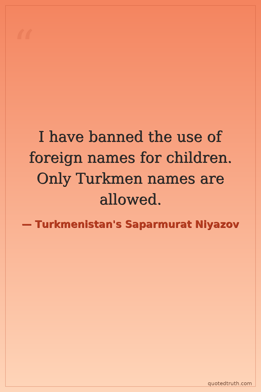 I have banned the use of foreign names for children. Only Turkmen names are allowed.
