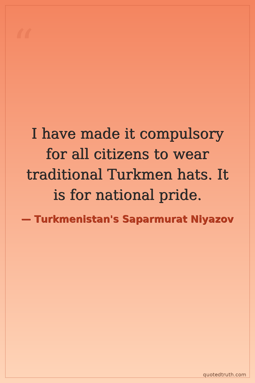 I have made it compulsory for all citizens to wear traditional Turkmen hats. It is for national pride.
