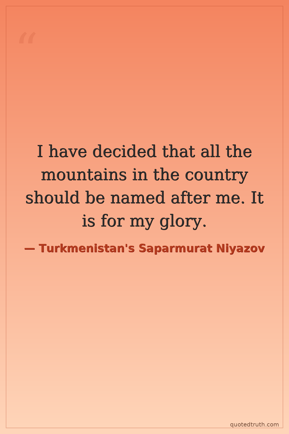 I have decided that all the mountains in the country should be named after me. It is for my glory.
