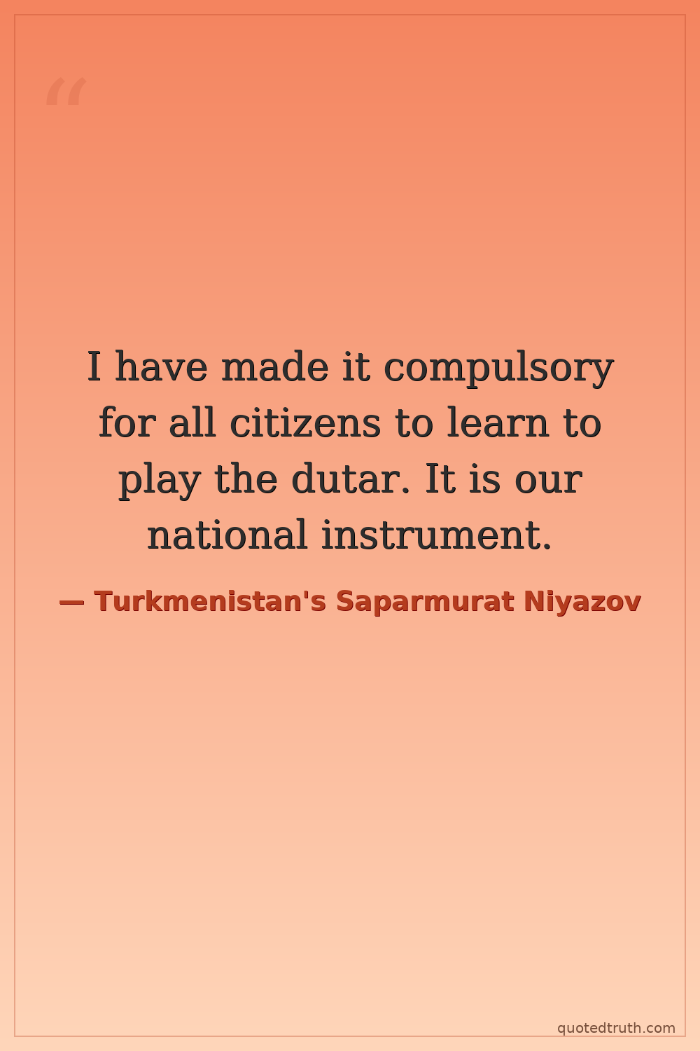 I have made it compulsory for all citizens to learn to play the dutar. It is our national instrument.