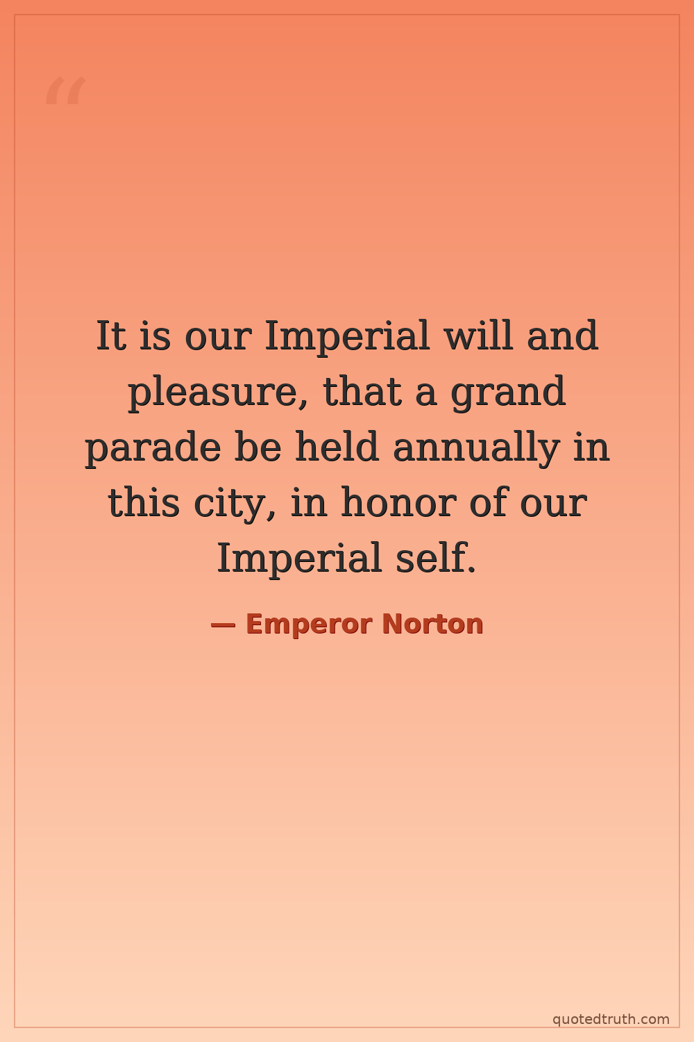 It is our Imperial will and pleasure, that a grand parade be held annually in this city, in honor of our Imperial self.