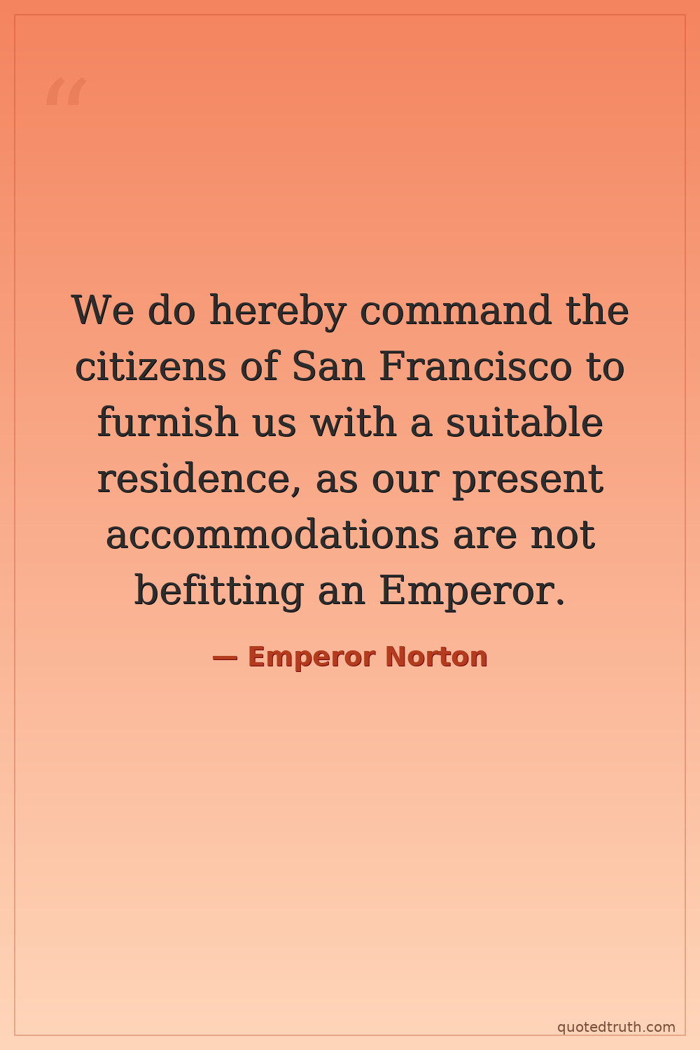 We do hereby command the citizens of San Francisco to furnish us with a suitable residence, as our present accommodations are not befitting an Emperor.