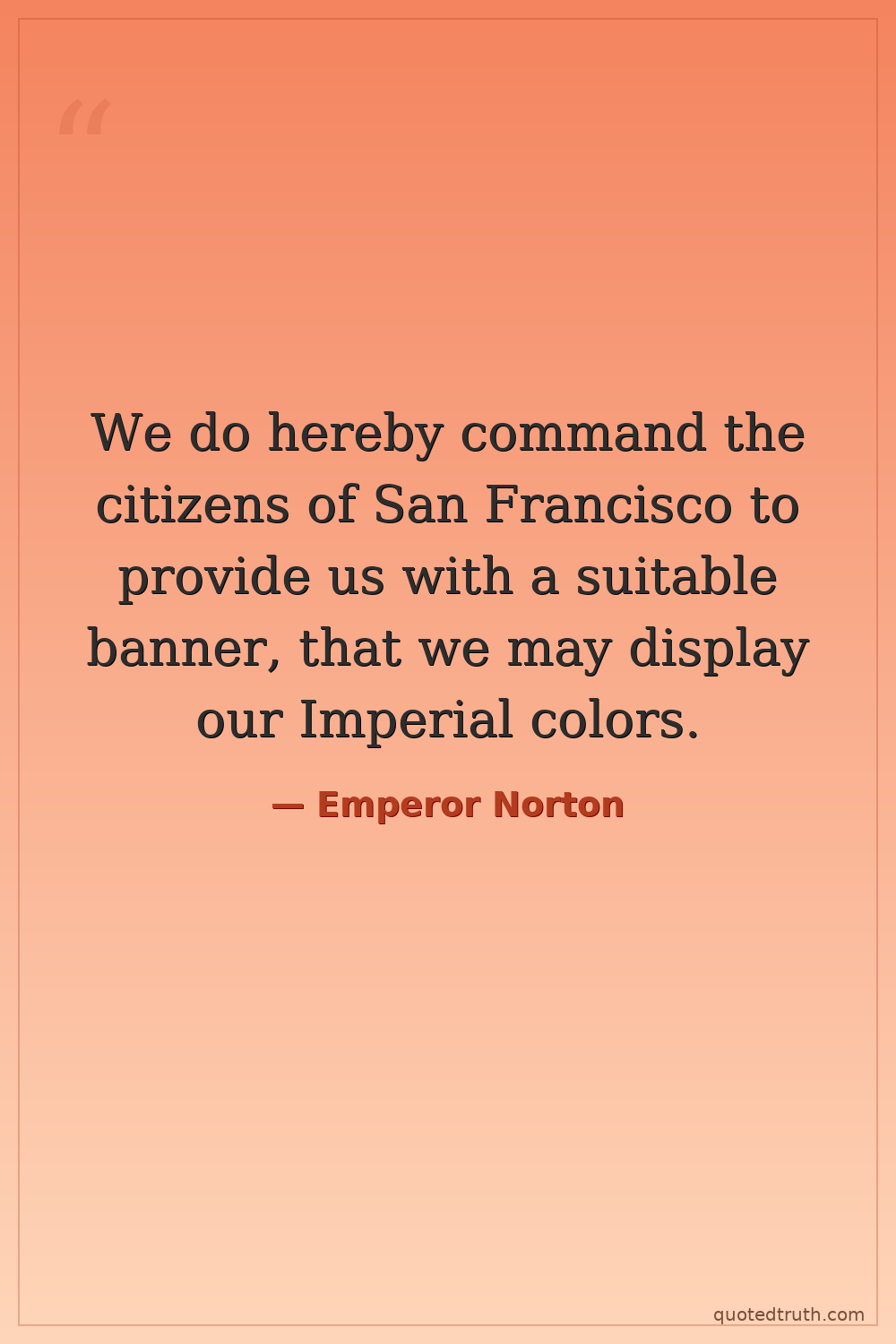 We do hereby command the citizens of San Francisco to provide us with a suitable banner, that we may display our Imperial colors.
