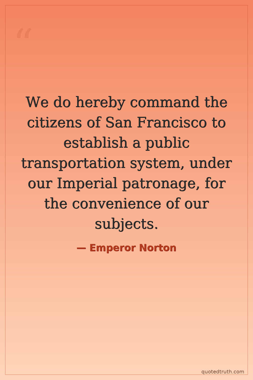 We do hereby command the citizens of San Francisco to establish a public transportation system, under our Imperial patronage, for the convenience of our subjects.