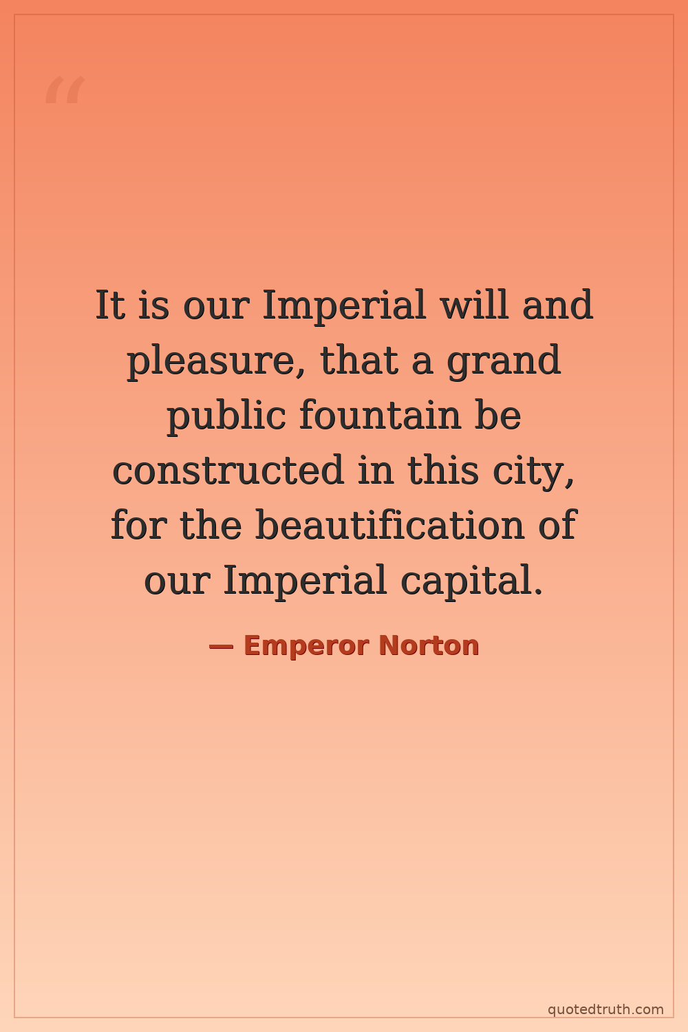It is our Imperial will and pleasure, that a grand public fountain be constructed in this city, for the beautification of our Imperial capital.