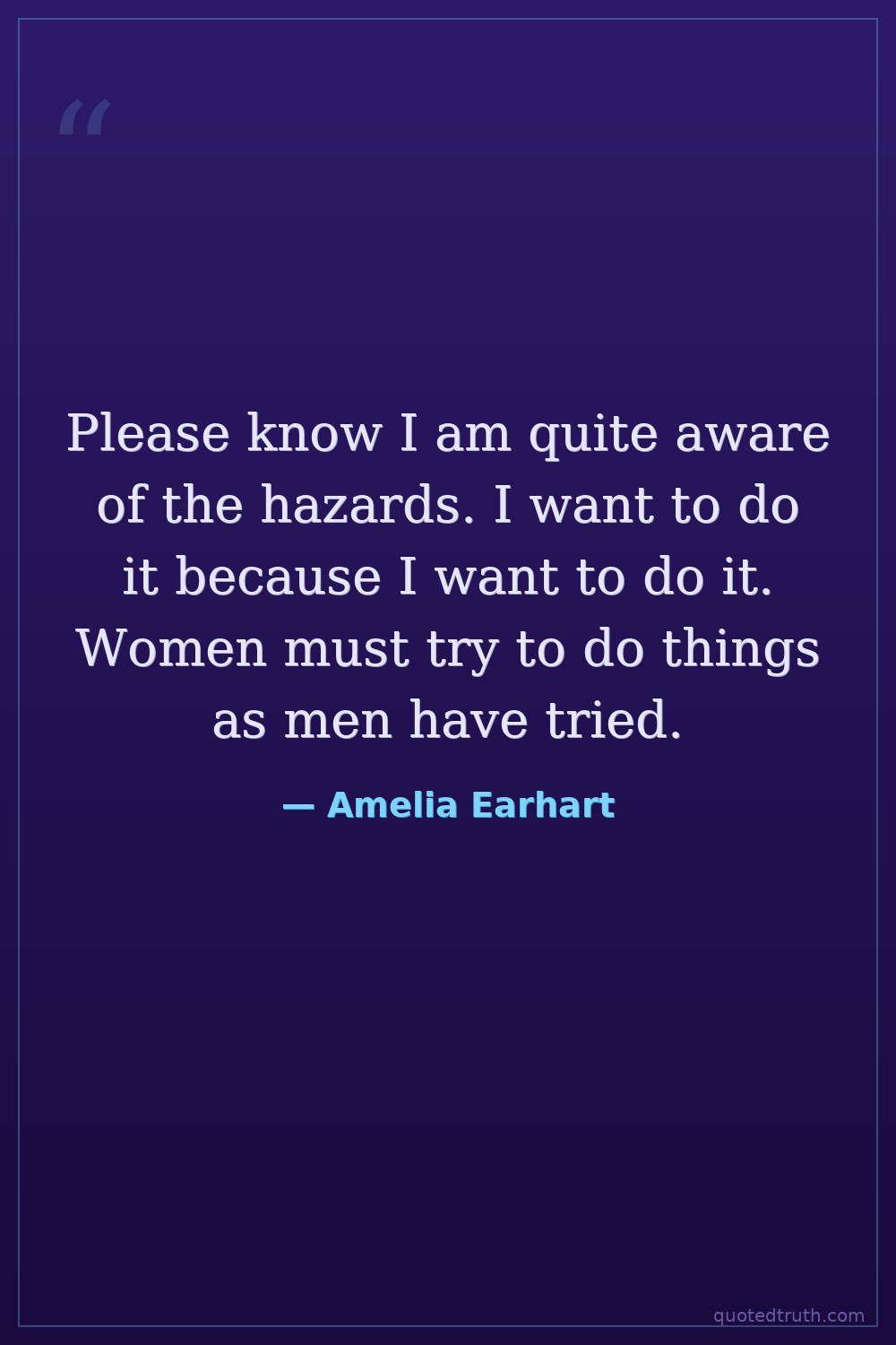 Please know I am quite aware of the hazards. I want to do it because I want to do it. Women must try to do things as men have tried.
