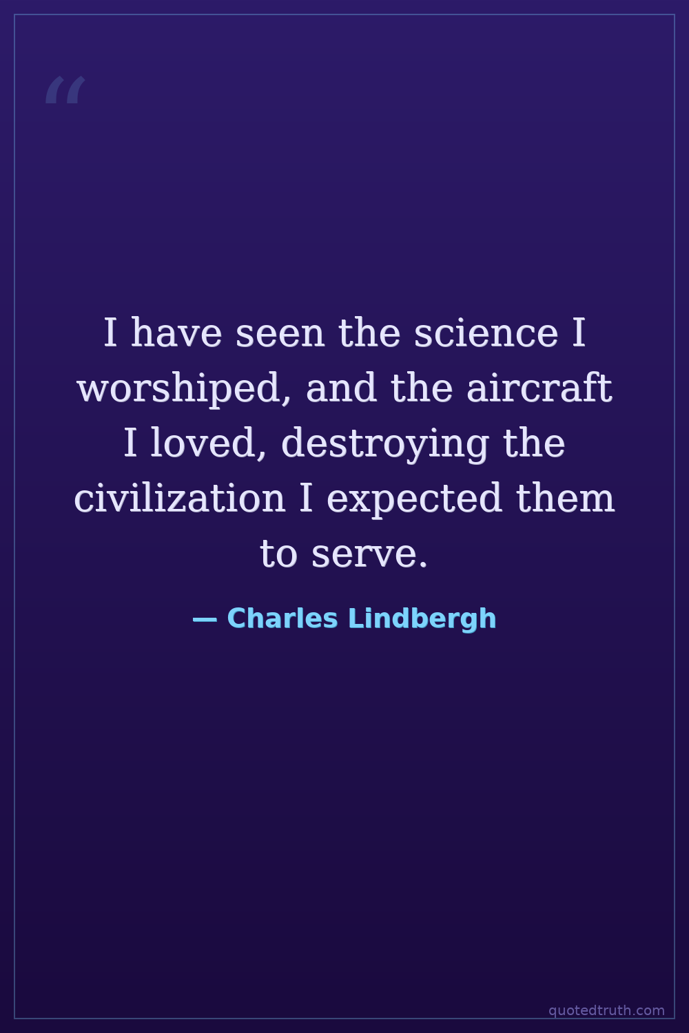 I have seen the science I worshiped, and the aircraft I loved, destroying the civilization I expected them to serve.