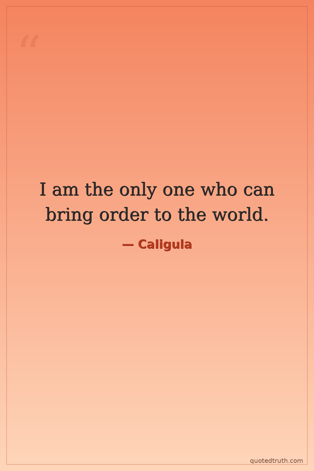 I am the only one who can bring order to the world.