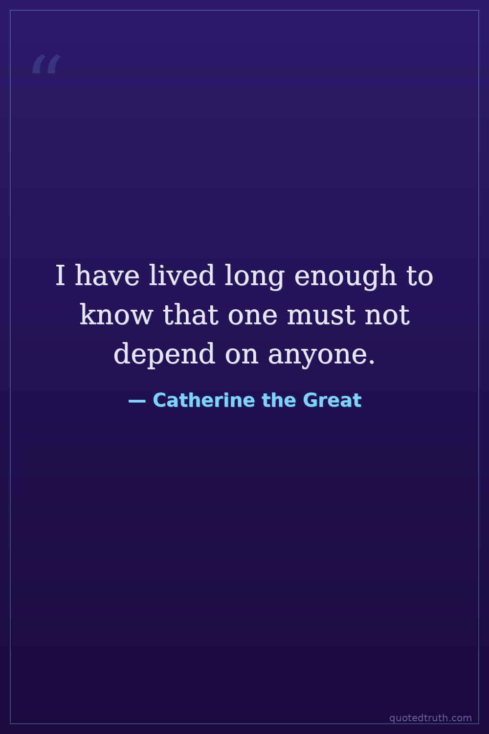 I have lived long enough to know that one must not depend on anyone.