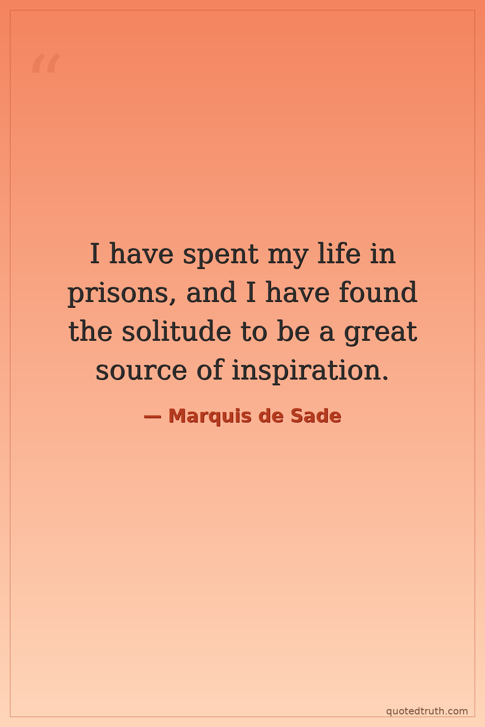 I have spent my life in prisons, and I have found the solitude to be a great source of inspiration.