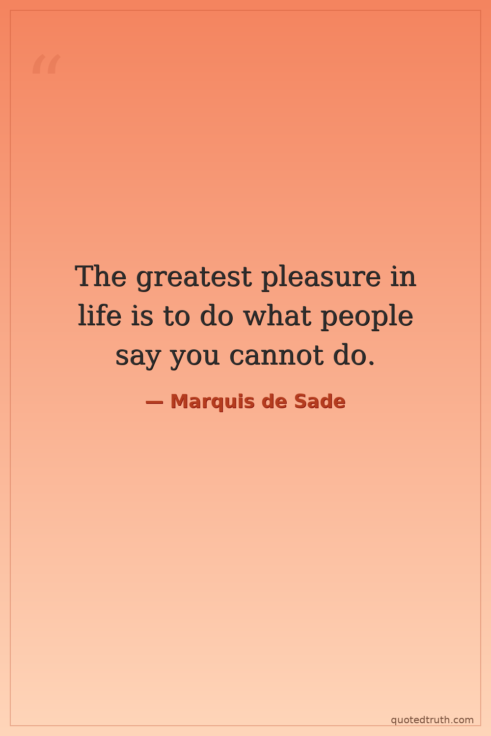 The greatest pleasure in life is to do what people say you cannot do.