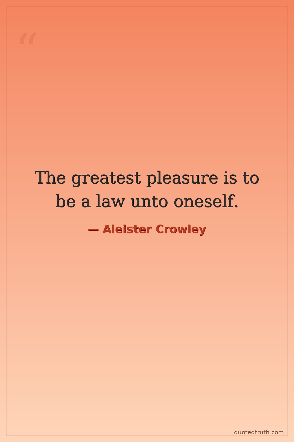 The greatest pleasure is to be a law unto oneself.