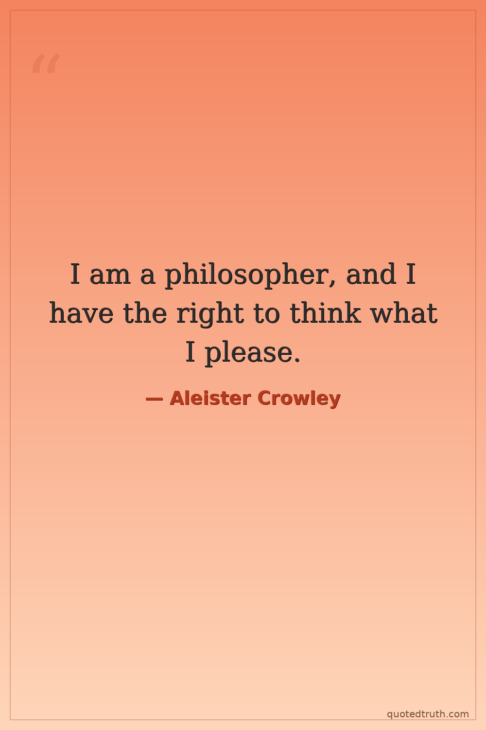 I am a philosopher, and I have the right to think what I please.