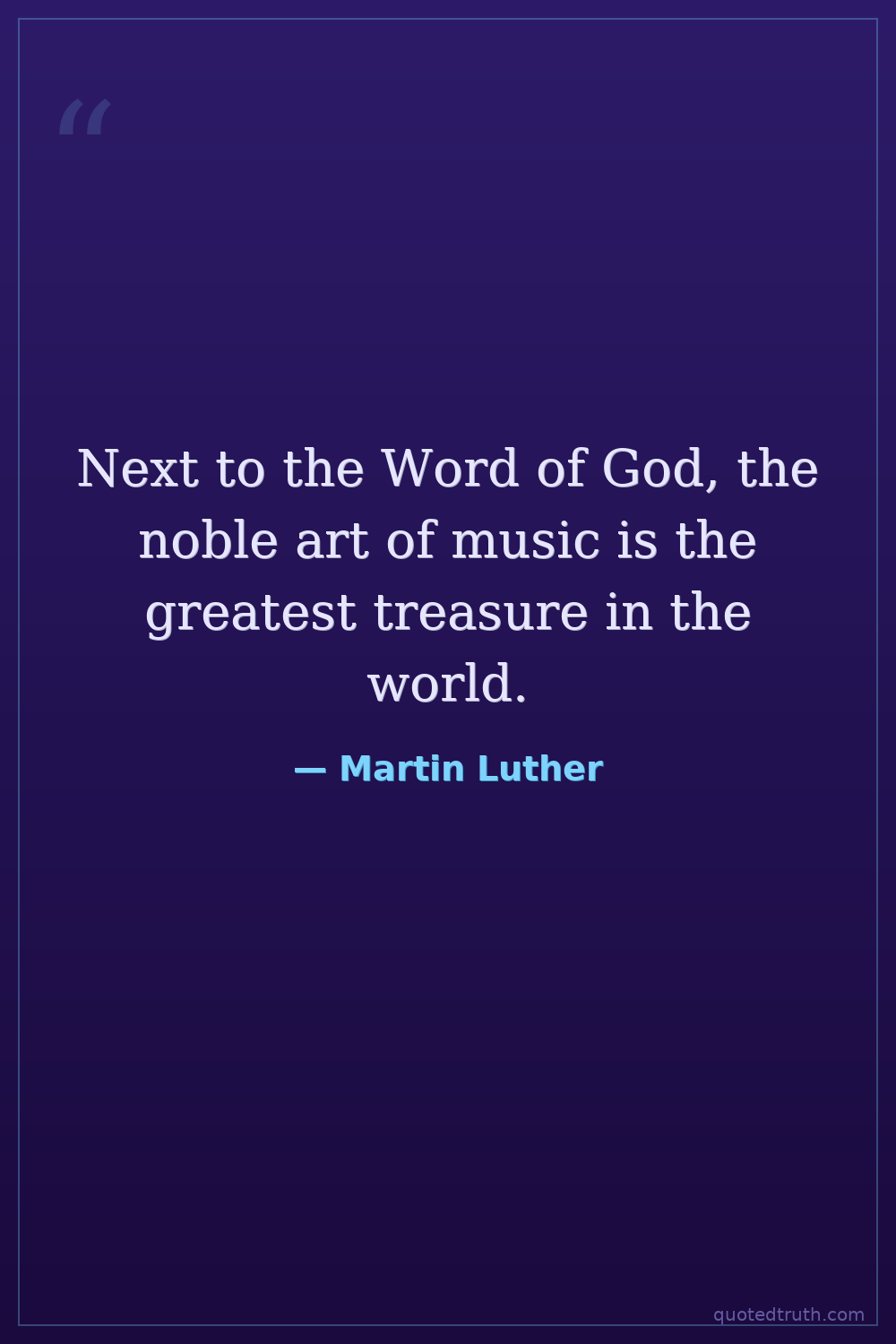 Next to the Word of God, the noble art of music is the greatest treasure in the world.