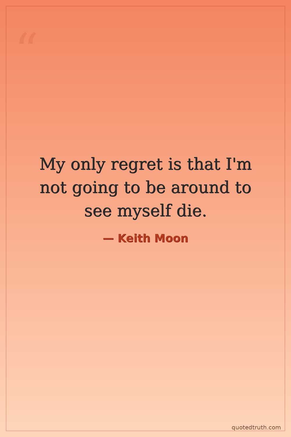 My only regret is that I'm not going to be around to see myself die.