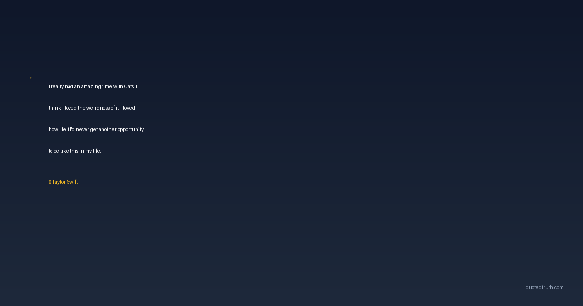 I really had an amazing time with Cats. I think I loved the weirdness of it. I loved how I felt I'd never get another opportunity to be like this in my life.