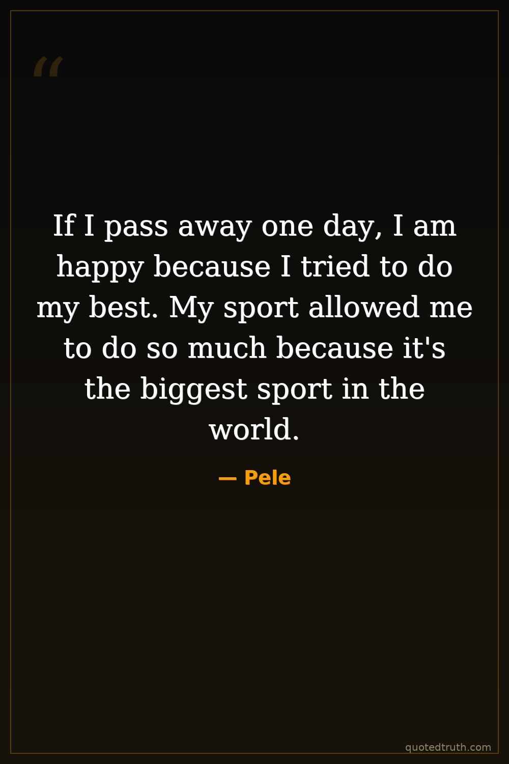 If I pass away one day, I am happy because I tried to do my best. My sport allowed me to do so much because it's the biggest sport in the world.
