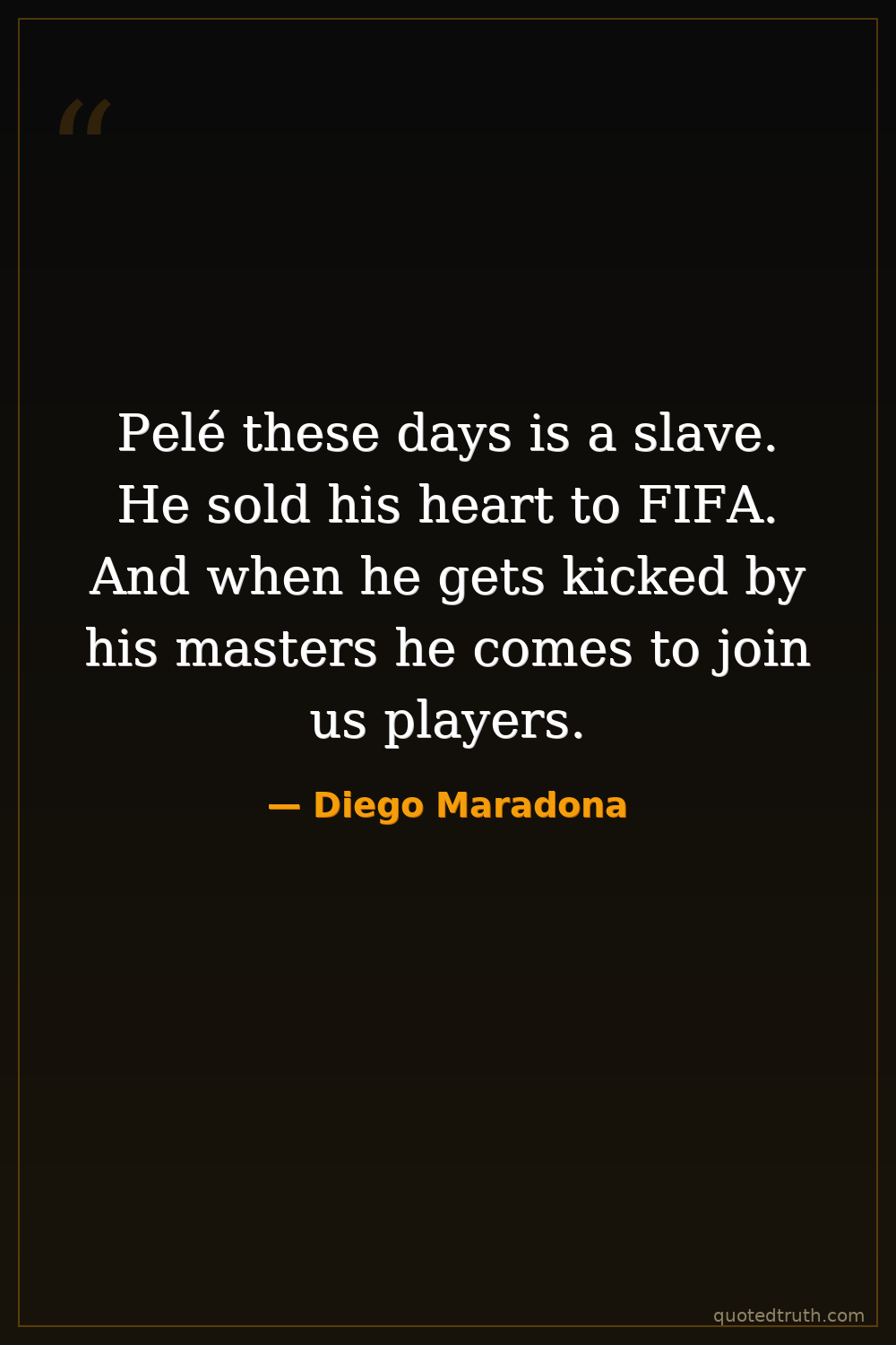 Pelé these days is a slave. He sold his heart to FIFA. And when he gets kicked by his masters he comes to join us players.