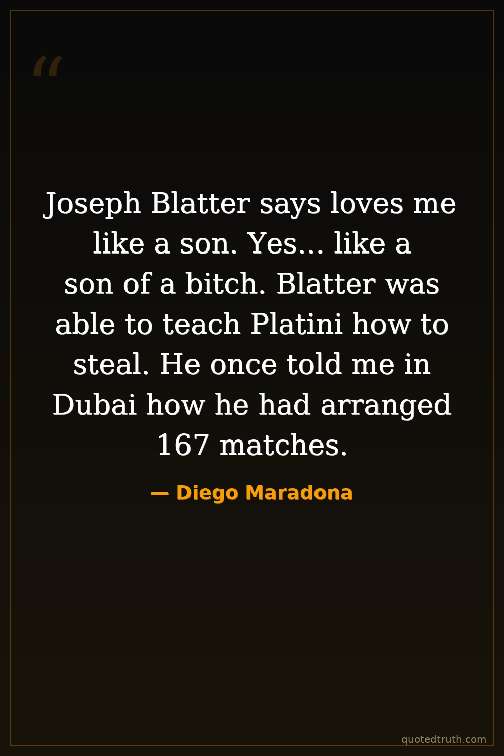 Joseph Blatter says loves me like a son. Yes... like a son of a bitch. Blatter was able to teach Platini how to steal. He once told me in Dubai how he had arranged 167 matches.