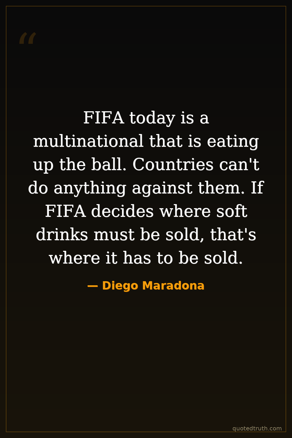 FIFA today is a multinational that is eating up the ball. Countries can't do anything against them. If FIFA decides where soft drinks must be sold, that's where it has to be sold.