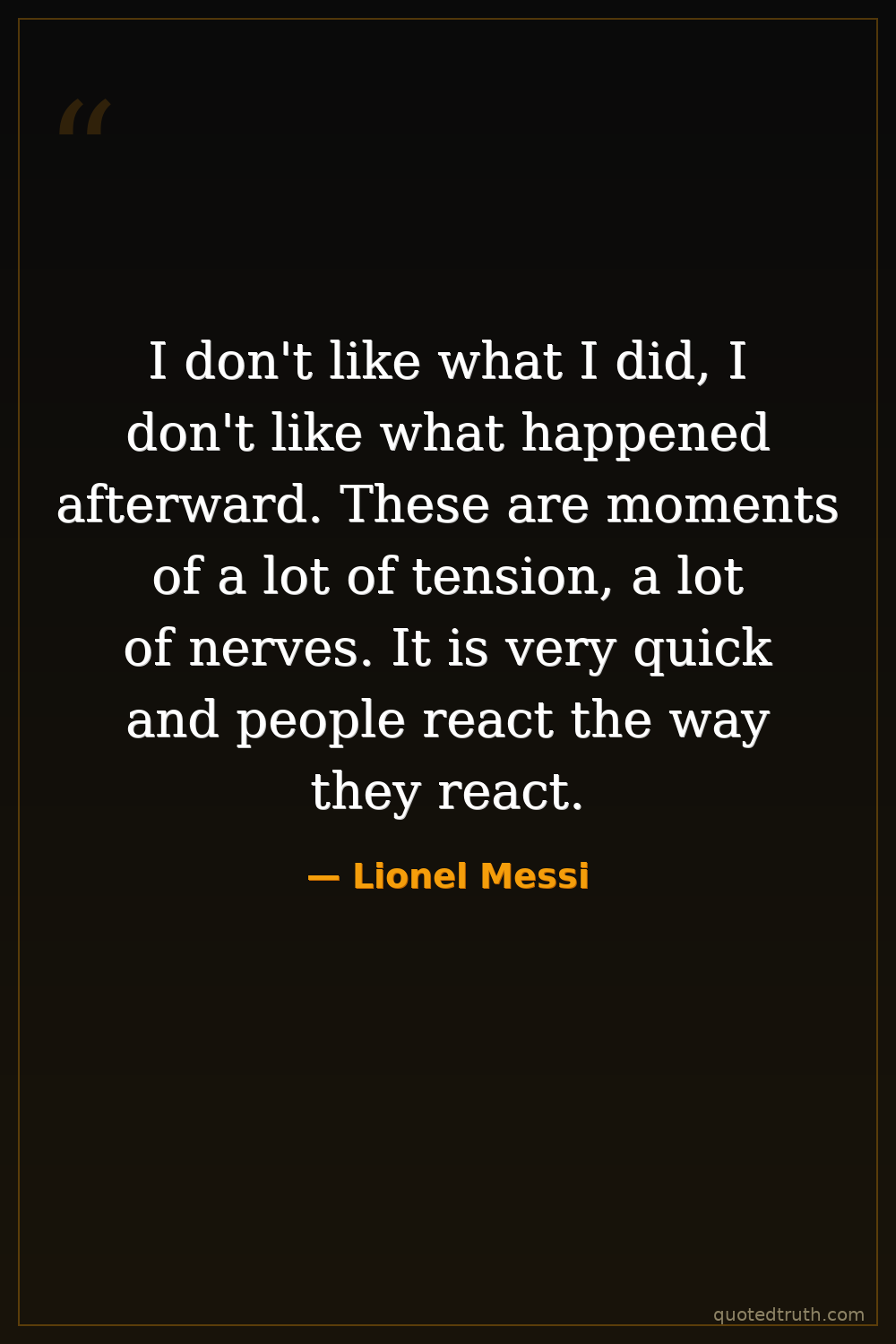 I don't like what I did, I don't like what happened afterward. These are moments of a lot of tension, a lot of nerves. It is very quick and people react the way they react.