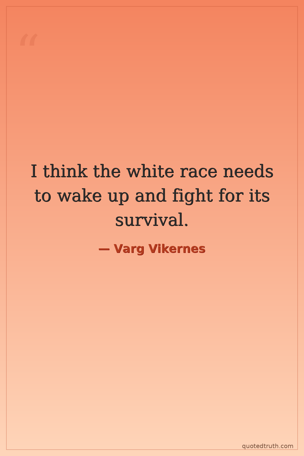 I think the white race needs to wake up and fight for its survival.