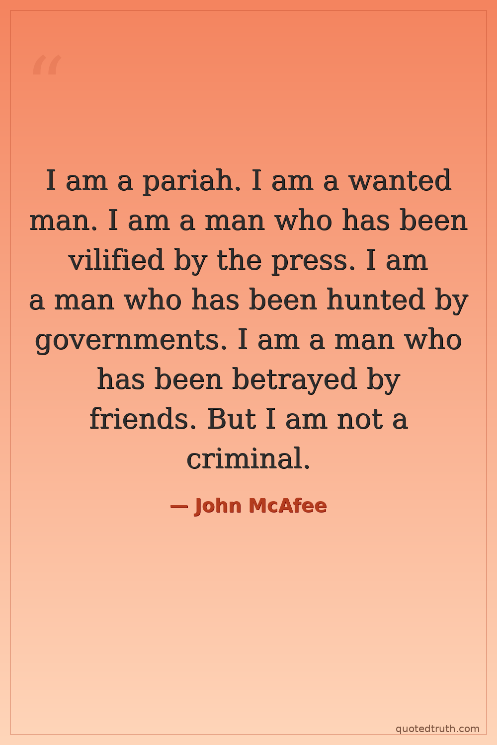 I am a pariah. I am a wanted man. I am a man who has been vilified by the press. I am a man who has been hunted by governments. I am a man who has been betrayed by friends. But I am not a criminal.