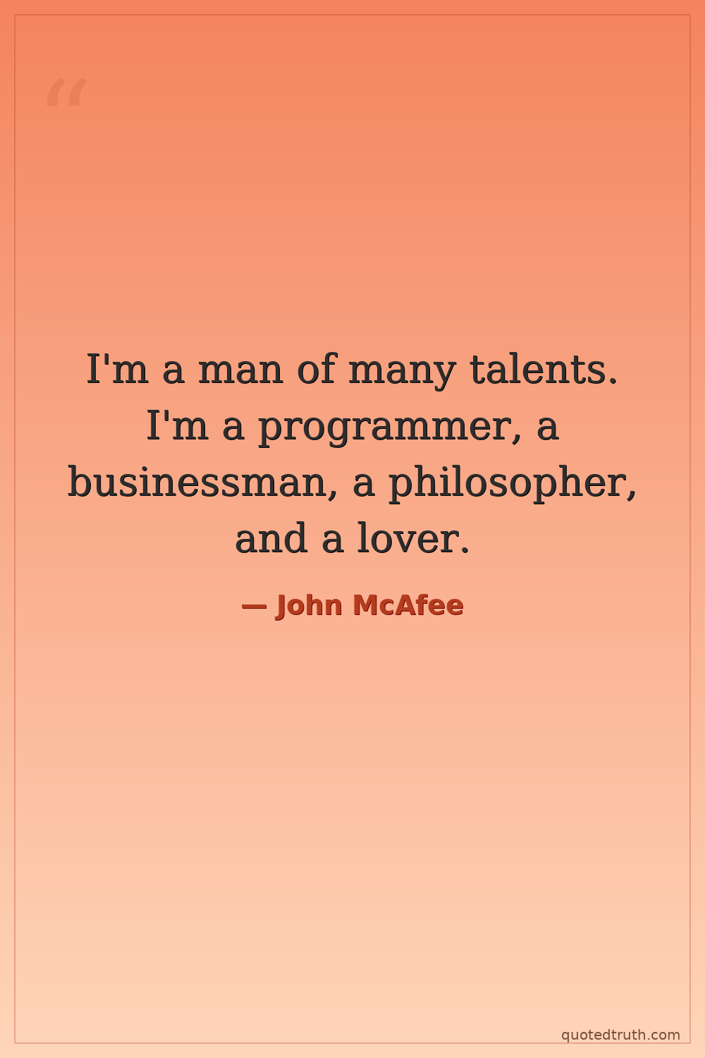 I'm a man of many talents. I'm a programmer, a businessman, a philosopher, and a lover.