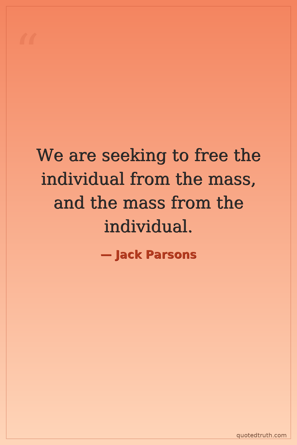 We are seeking to free the individual from the mass, and the mass from the individual.
