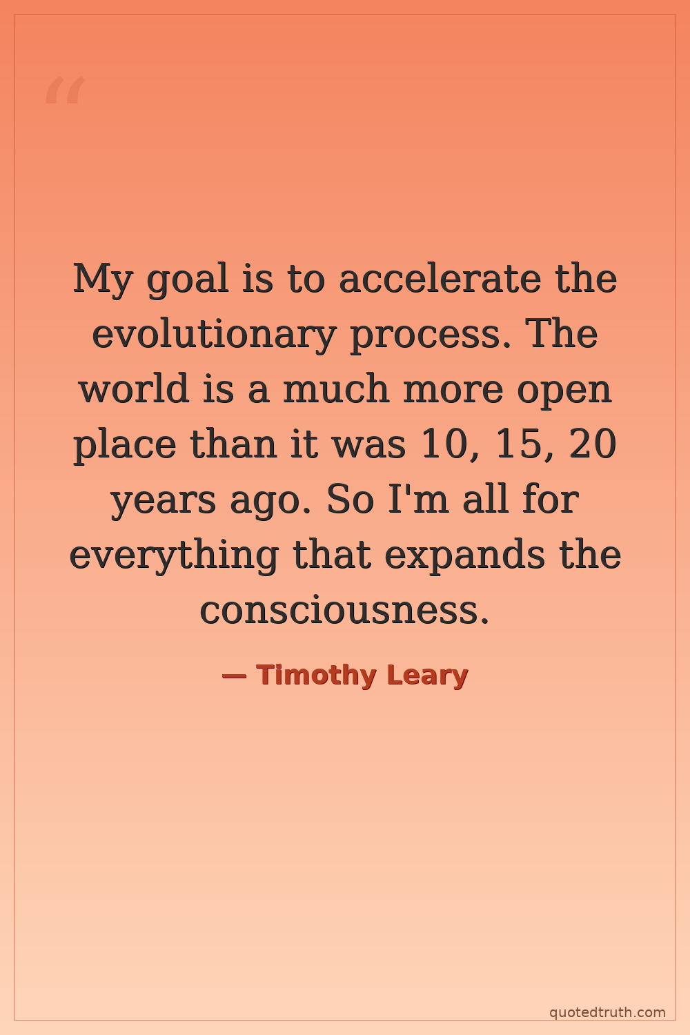 My goal is to accelerate the evolutionary process. The world is a much more open place than it was 10, 15, 20 years ago. So I'm all for everything that expands the consciousness.