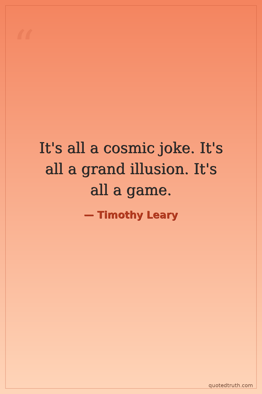 It's all a cosmic joke. It's all a grand illusion. It's all a game.