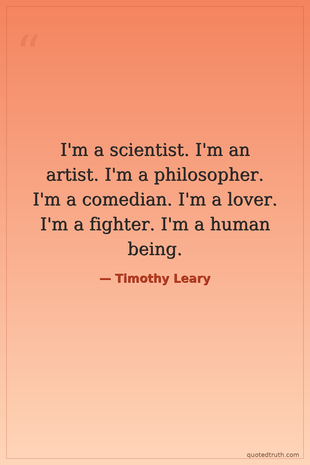 I'm a scientist. I'm an artist. I'm a philosopher. I'm a comedian. I'm a lover. I'm a fighter. I'm a human being.