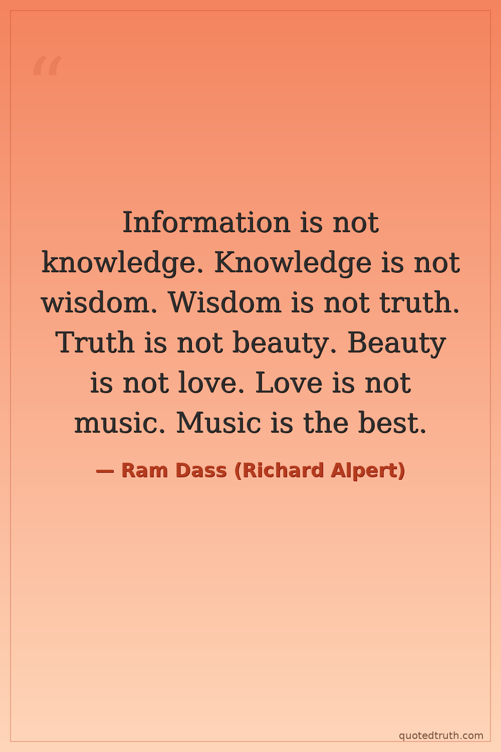 Information is not knowledge. Knowledge is not wisdom. Wisdom is not truth. Truth is not beauty. Beauty is not love. Love is not music. Music is the best.