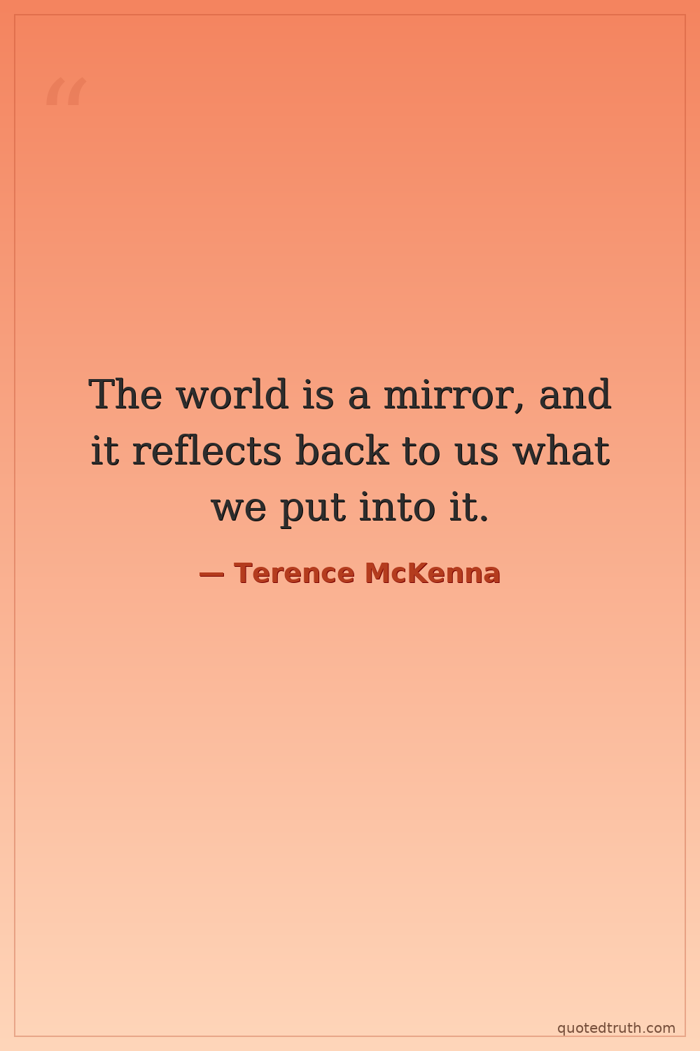 The world is a mirror, and it reflects back to us what we put into it.
