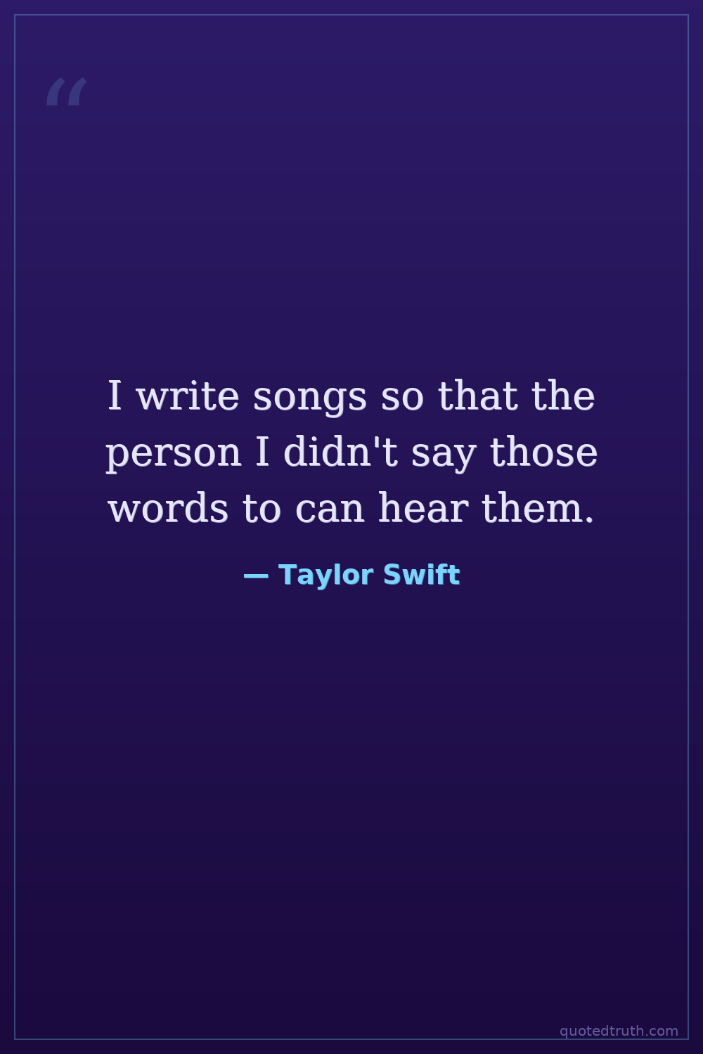 I write songs so that the person I didn't say those words to can hear them.