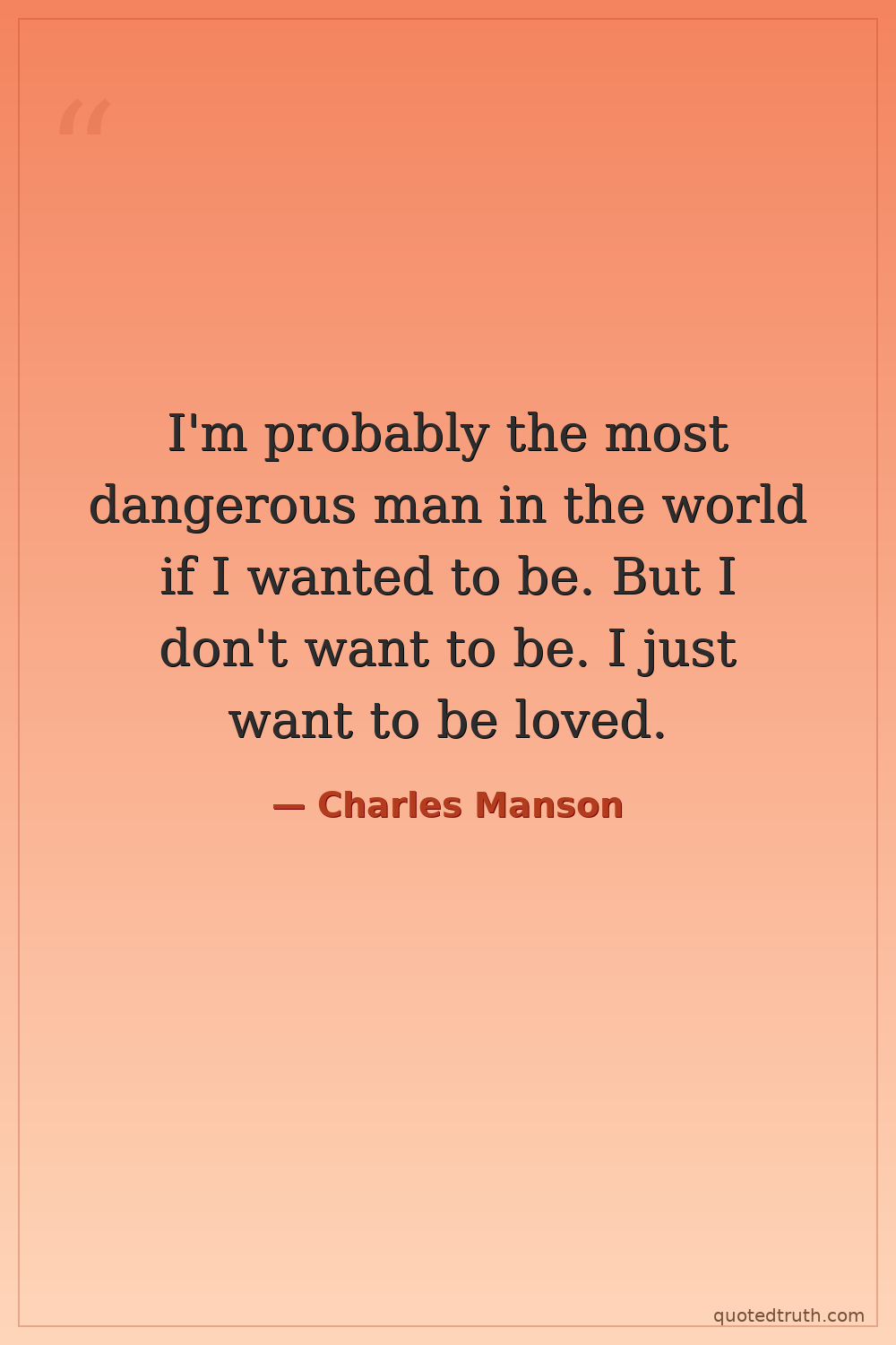 I'm probably the most dangerous man in the world if I wanted to be. But I don't want to be. I just want to be loved.